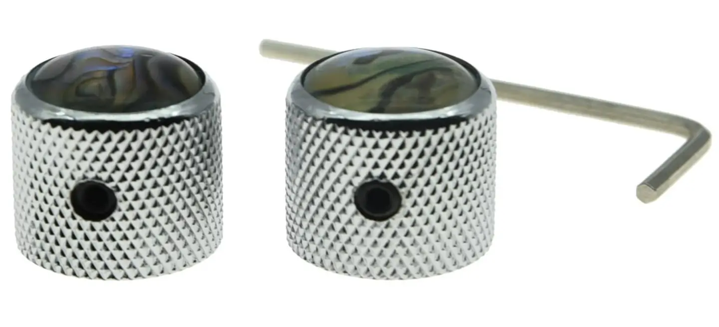 KAISH Chrome Set of 2 Abalone Top Guitar Knobs Dome Knobs Bass Knob with Set Screw for Tele/Telecaster