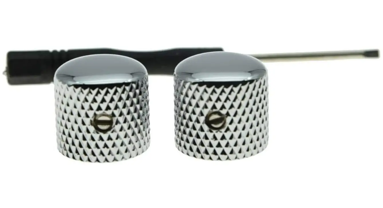 KAISH Set of 2 Chrome Metal Guitar Dome Knobs Bass Knob with Set Screw for Telecaster/Tele Guitar